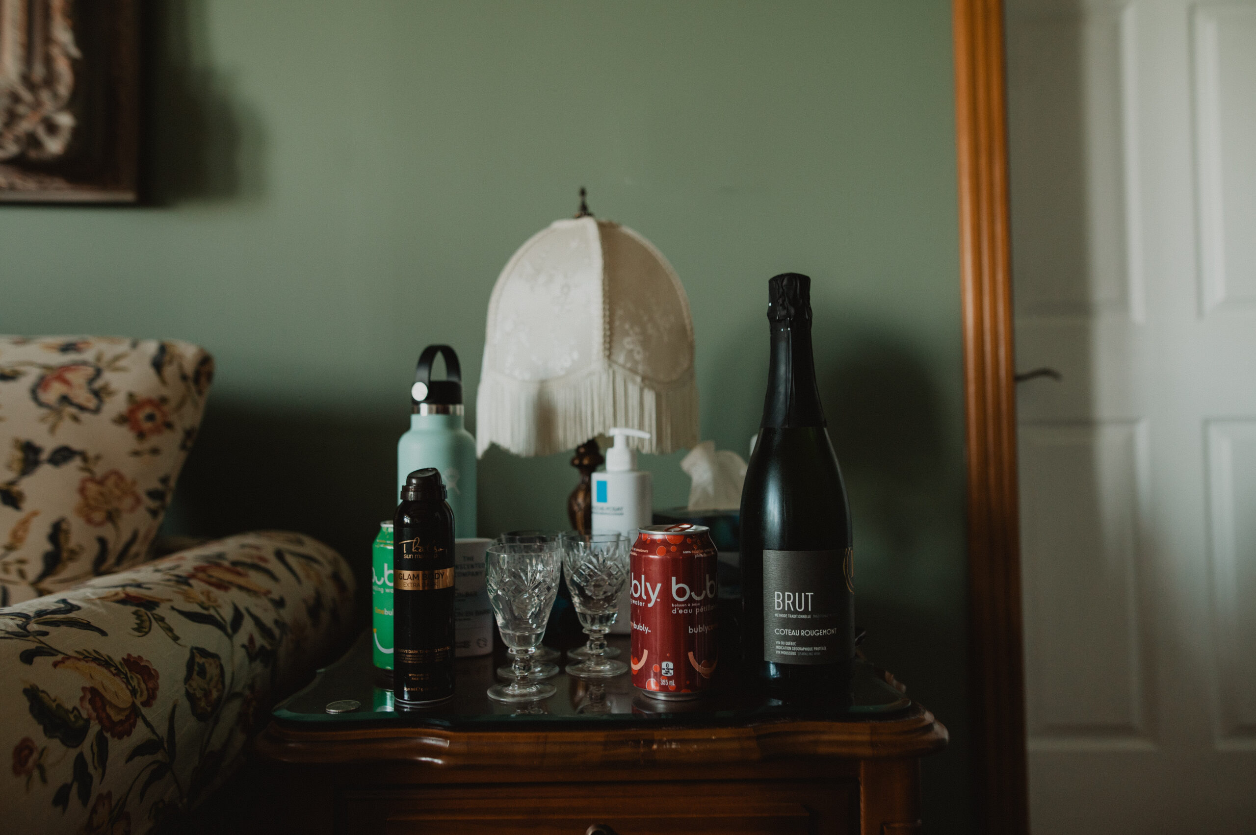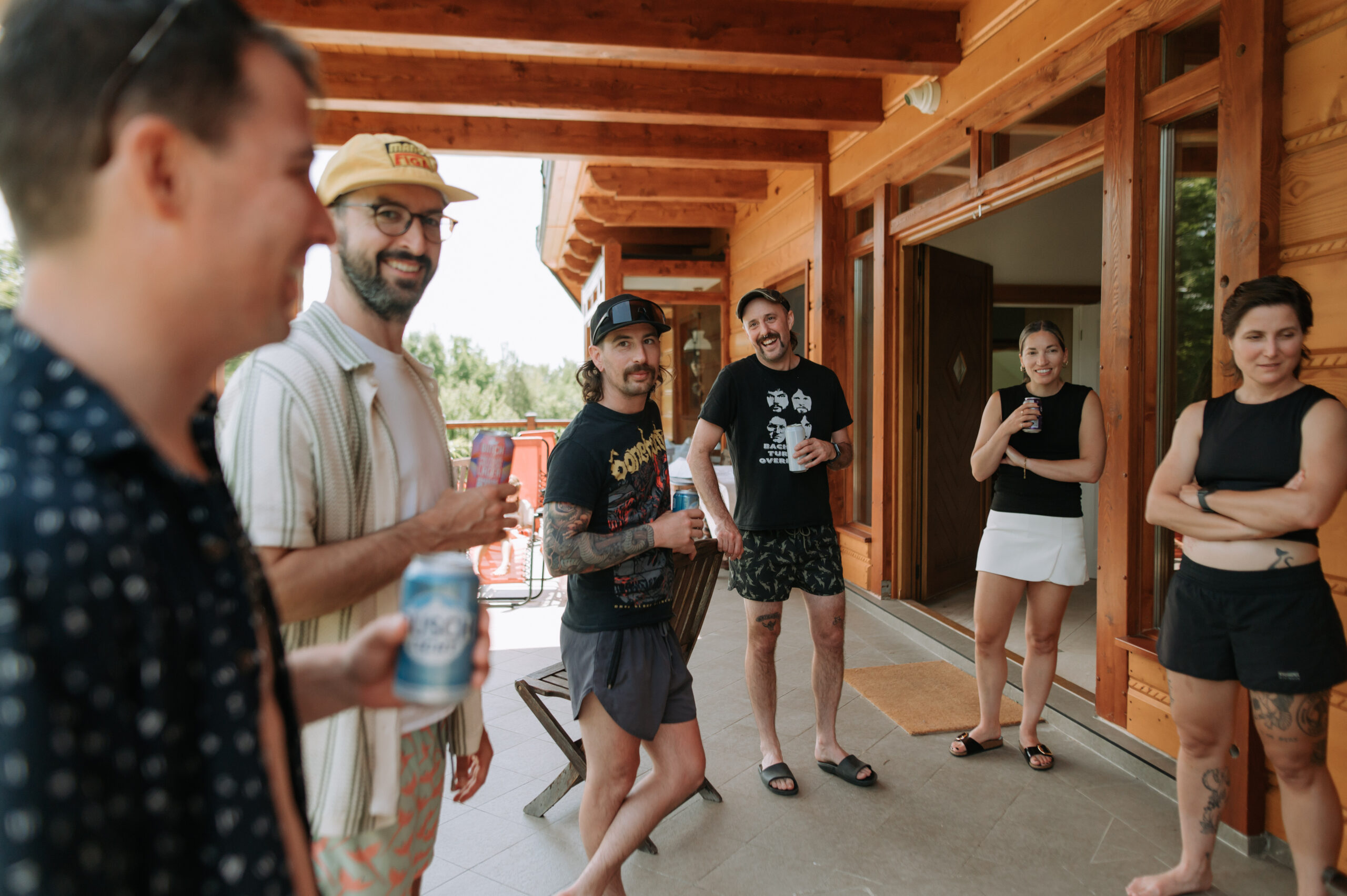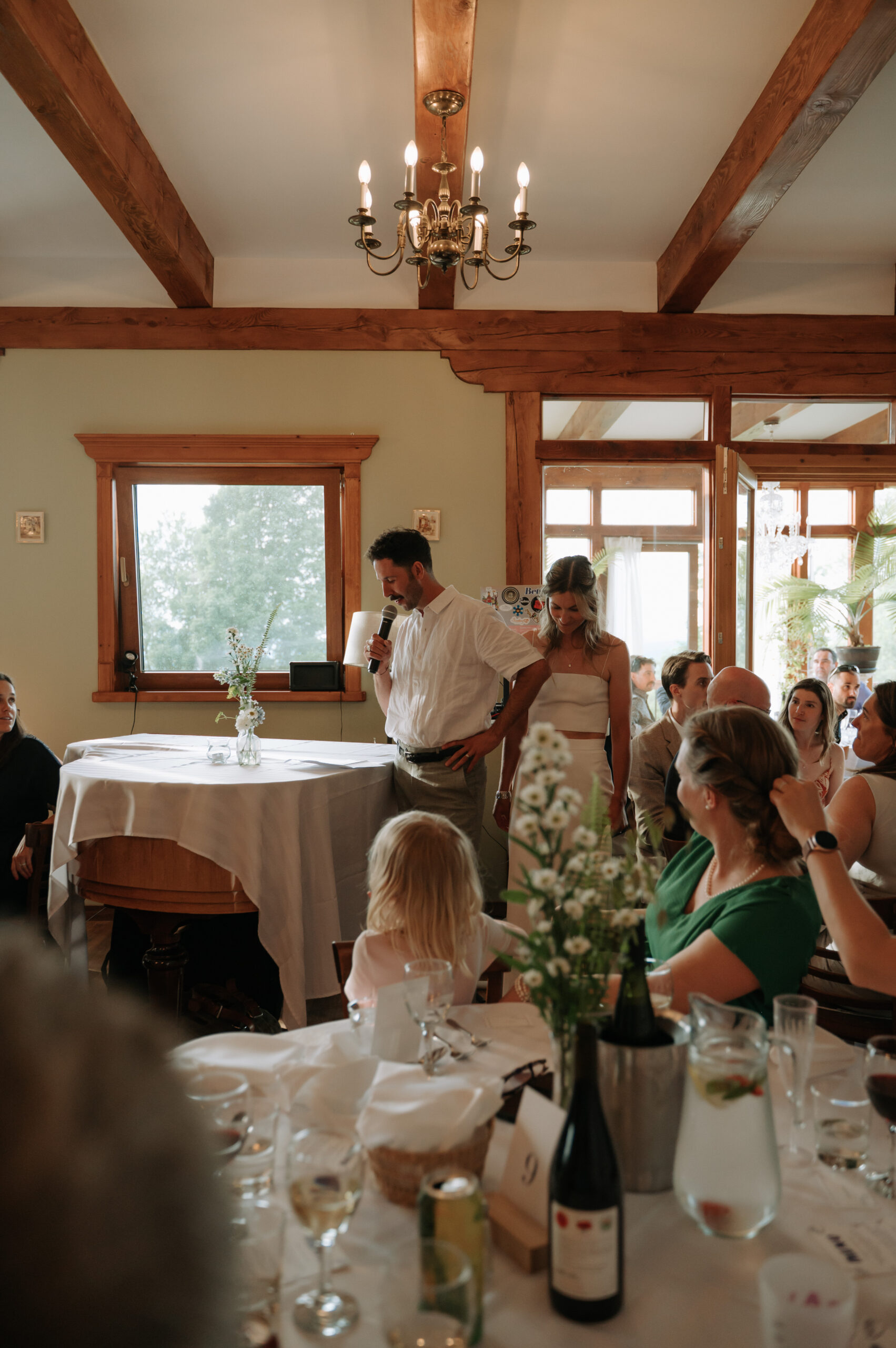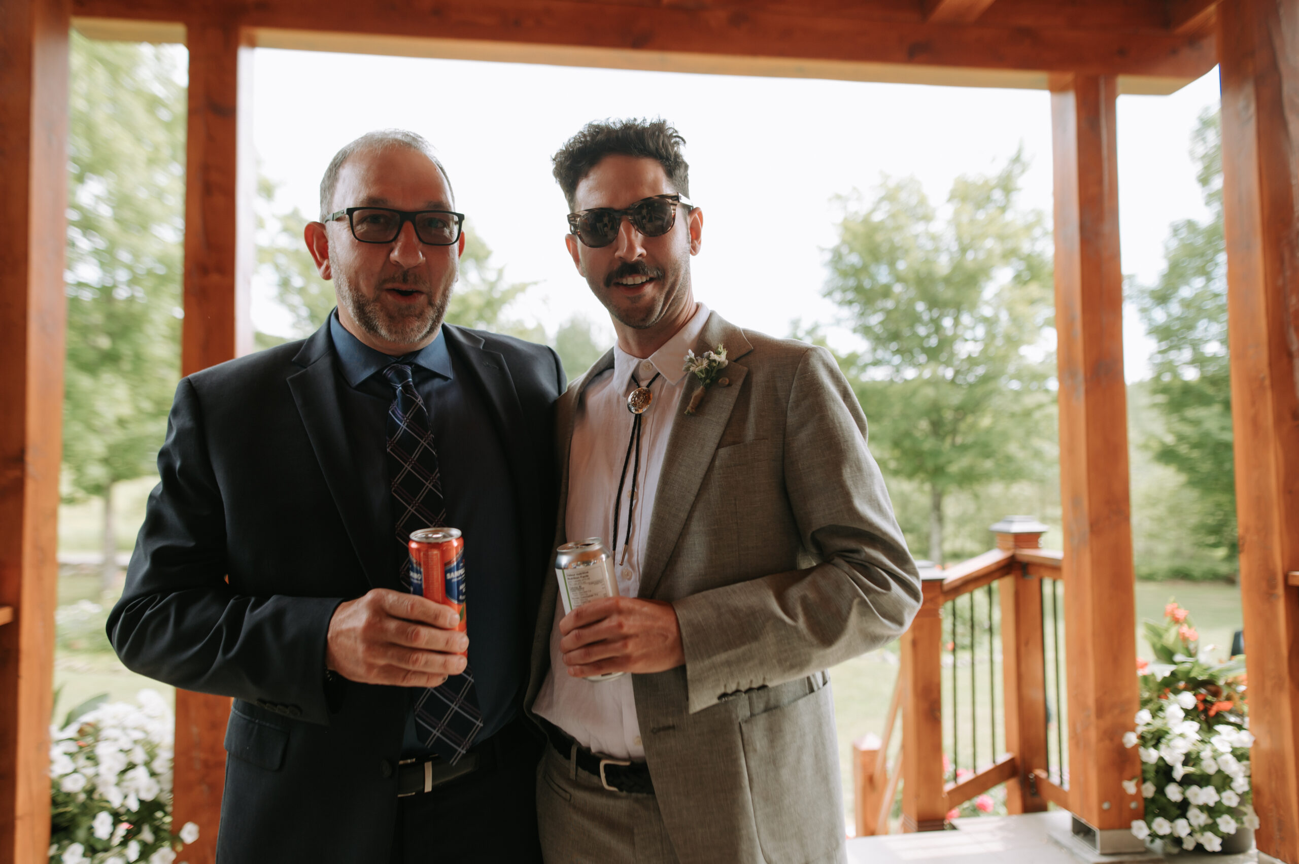 Ces deux-là savent s’entourer et mettre en valeur le talent de leurs amis. Ils ont choisi un domaine situé à Sutton, en Estrie, un lieu cher à leur famille, en pleine nature, parfait pour des amateurs de plein air comme eux. La bière provenait de leurs amis de GasparD et Messorem, brassant deux des meilleures IPA du Québec, les illustrations étaient signées par l’une des invitées, Mariève Ledoux, et le vin était québécois (une évidence pour Halina, qui le défend depuis toujours.) Entourés d’amis impliqués dans la décoration et l’organisation, ils ont créé une journée profondément humaine.