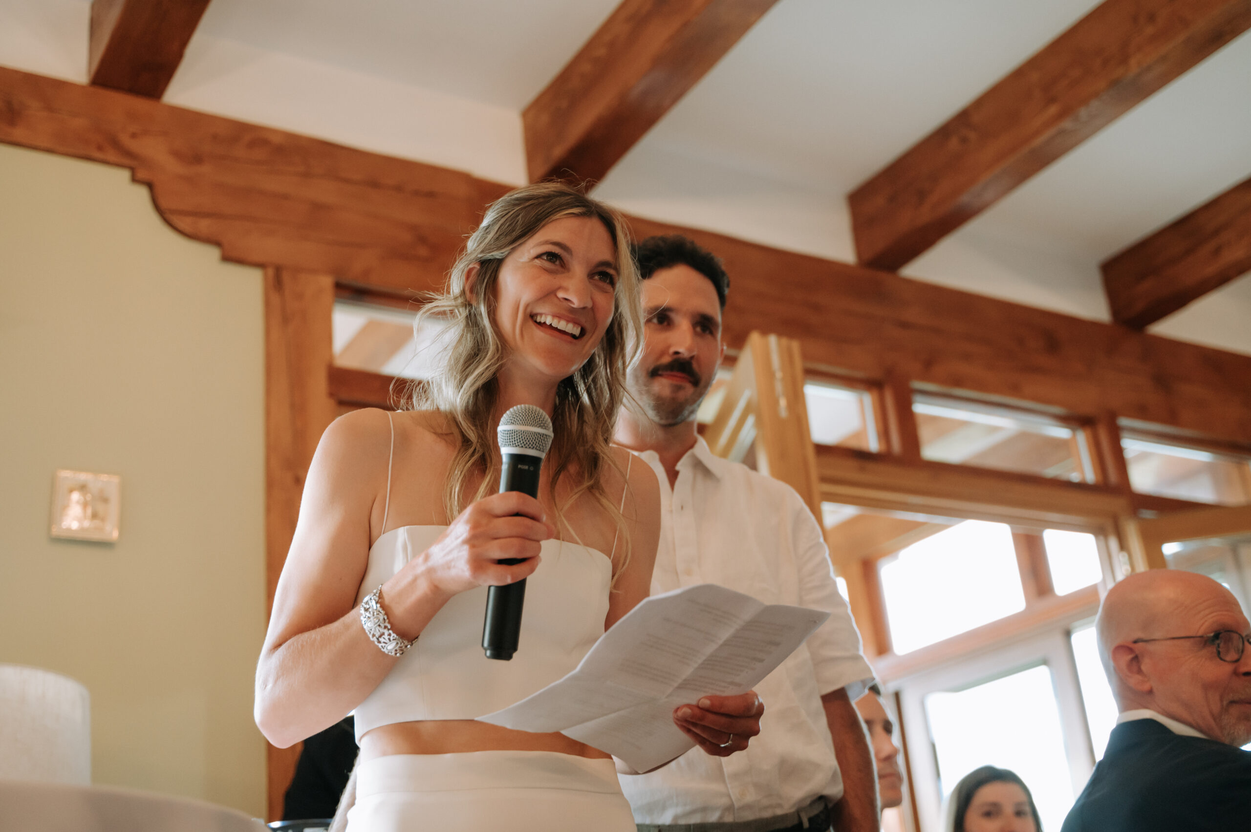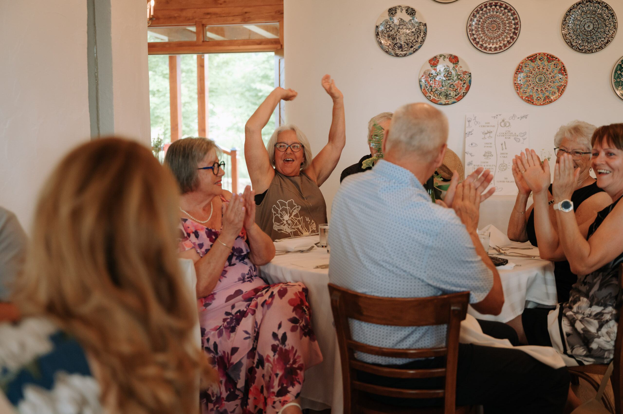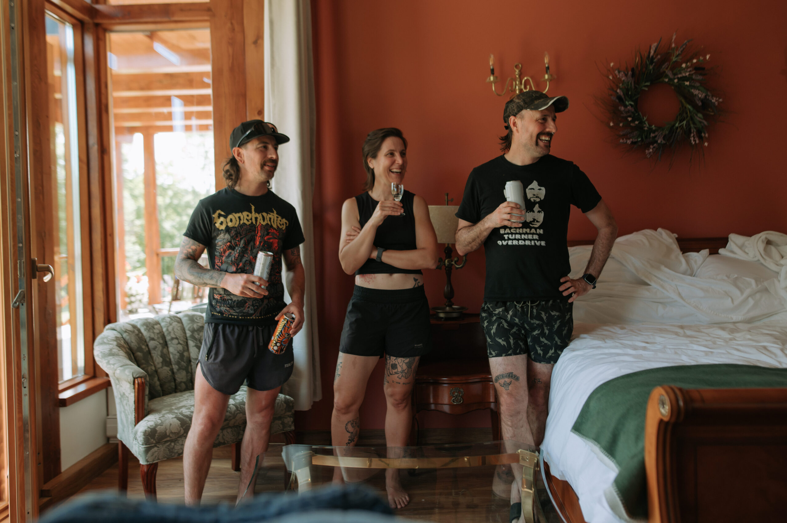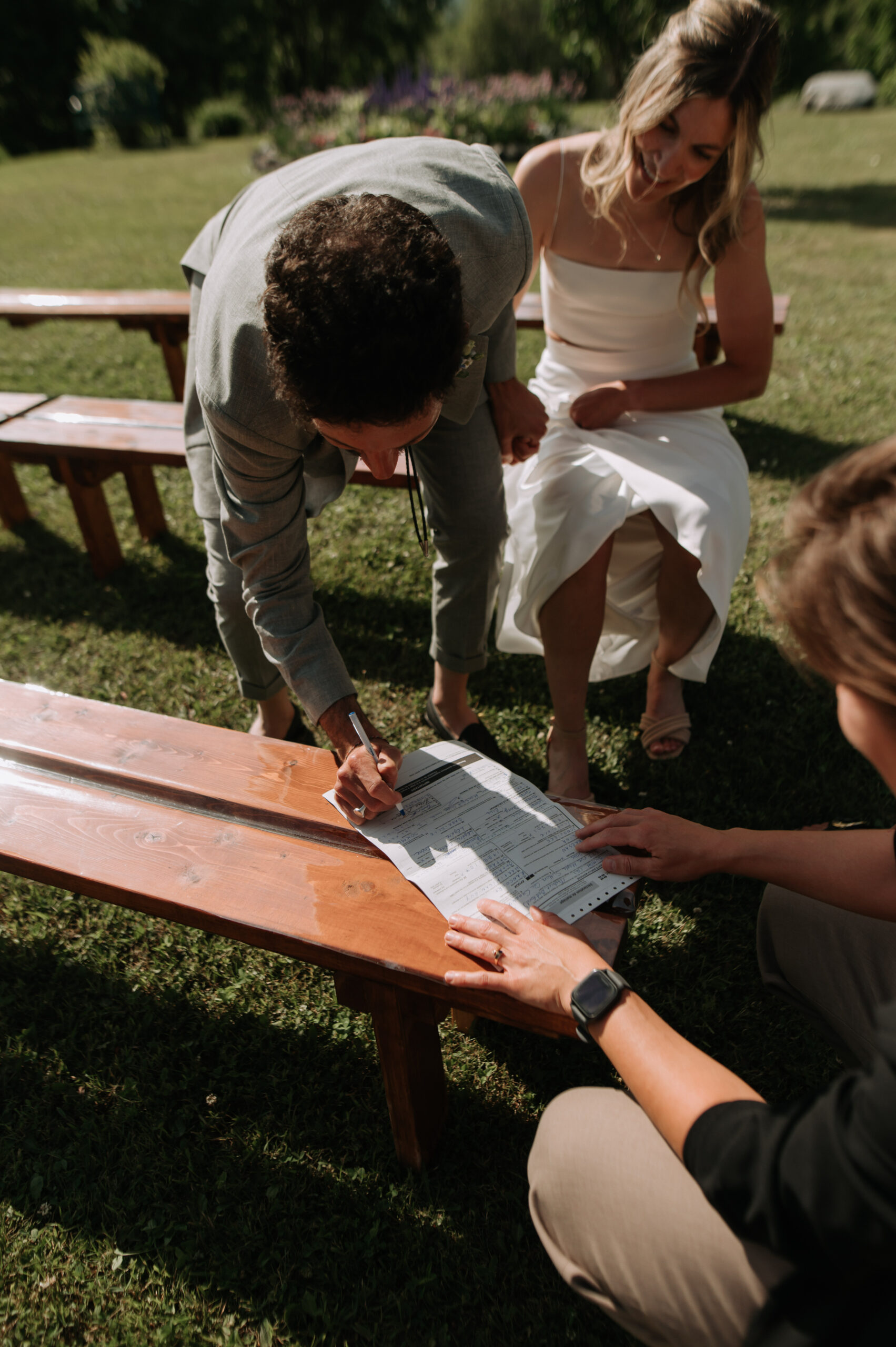 Ces deux-là savent s’entourer et mettre en valeur le talent de leurs amis. Ils ont choisi un domaine situé à Sutton, en Estrie, un lieu cher à leur famille, en pleine nature, parfait pour des amateurs de plein air comme eux. La bière provenait de leurs amis de GasparD et Messorem, brassant deux des meilleures IPA du Québec, les illustrations étaient signées par l’une des invitées, Mariève Ledoux, et le vin était québécois (une évidence pour Halina, qui le défend depuis toujours.) Entourés d’amis impliqués dans la décoration et l’organisation, ils ont créé une journée profondément humaine.